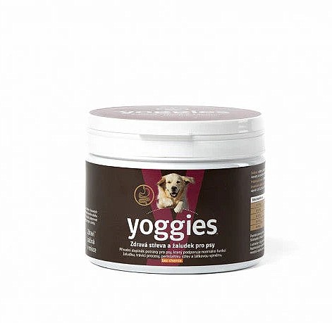 Když v trávicím traktu vše funguje, jak má, naši psí kamarádi jsou nejen šťastnější, ale také odolnější vůči různým zdravotním potížím. Díky kombinaci probiotik, prebiotické vlákniny a fermentovaných bylin náš doplněk Yoggies® udržuje psí střeva čistá a funkční.
